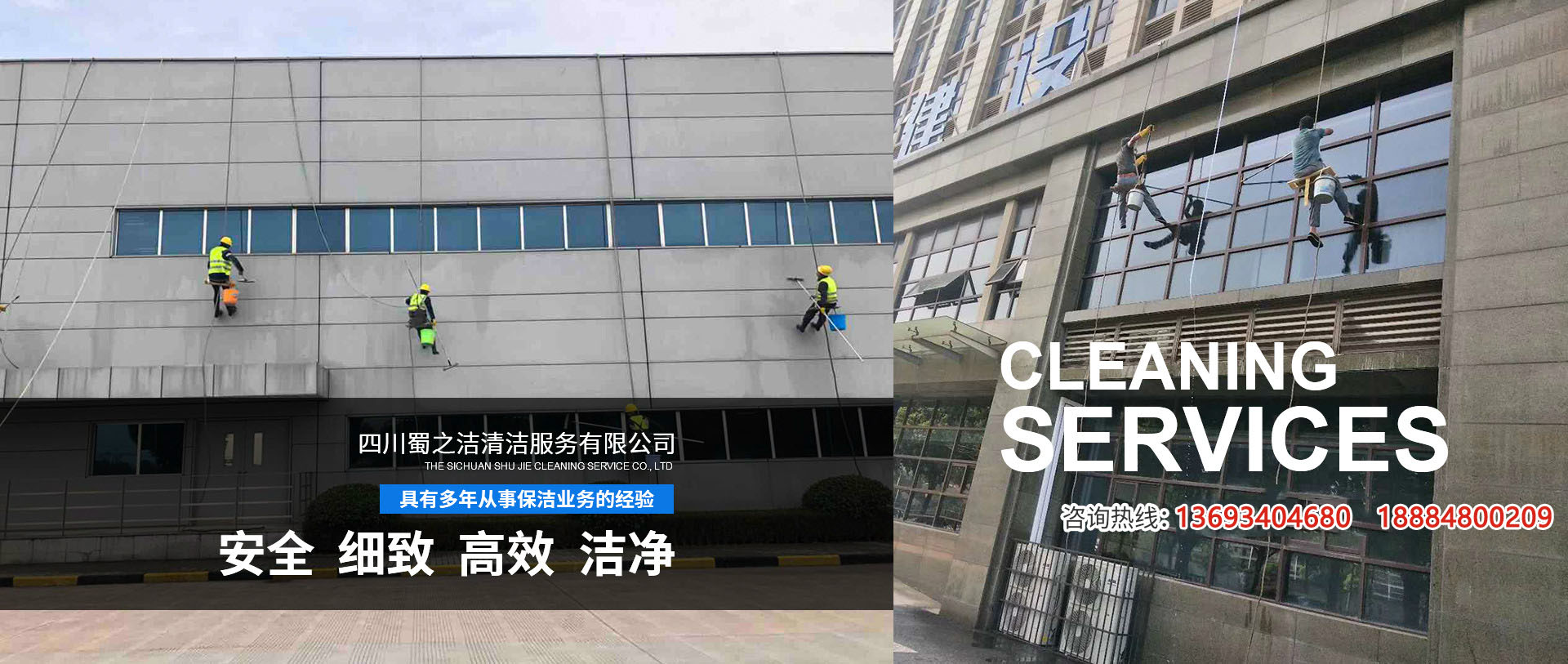 四川蜀之潔清潔服務有限公司,公司位于四川省成都市金牛區,是一家專門為寫字樓、物業小區、工業園、商場、醫院等提供保潔工程的服務公司。我們的優勢在于承接外墻清洗工程、外墻維修工程、高空作業、幕墻清洗及維修等工程。公司下屬環境技術服務部、瓷磚保養事業部、清潔服務事業、高空外墻作業部等部門為客戶提供更好的服務。 公司從創辦人到員工均有多年從事保潔業務的經...